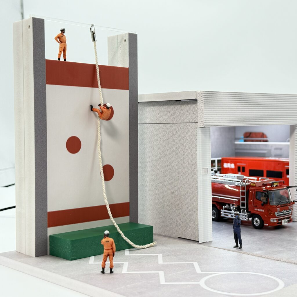 <新開発品>ASPEDA Fast Diorama(ファストジオラマ)シリーズ第2弾!1/64スケール消防署ジオラマに接続可能な、”消防訓練塔”発売